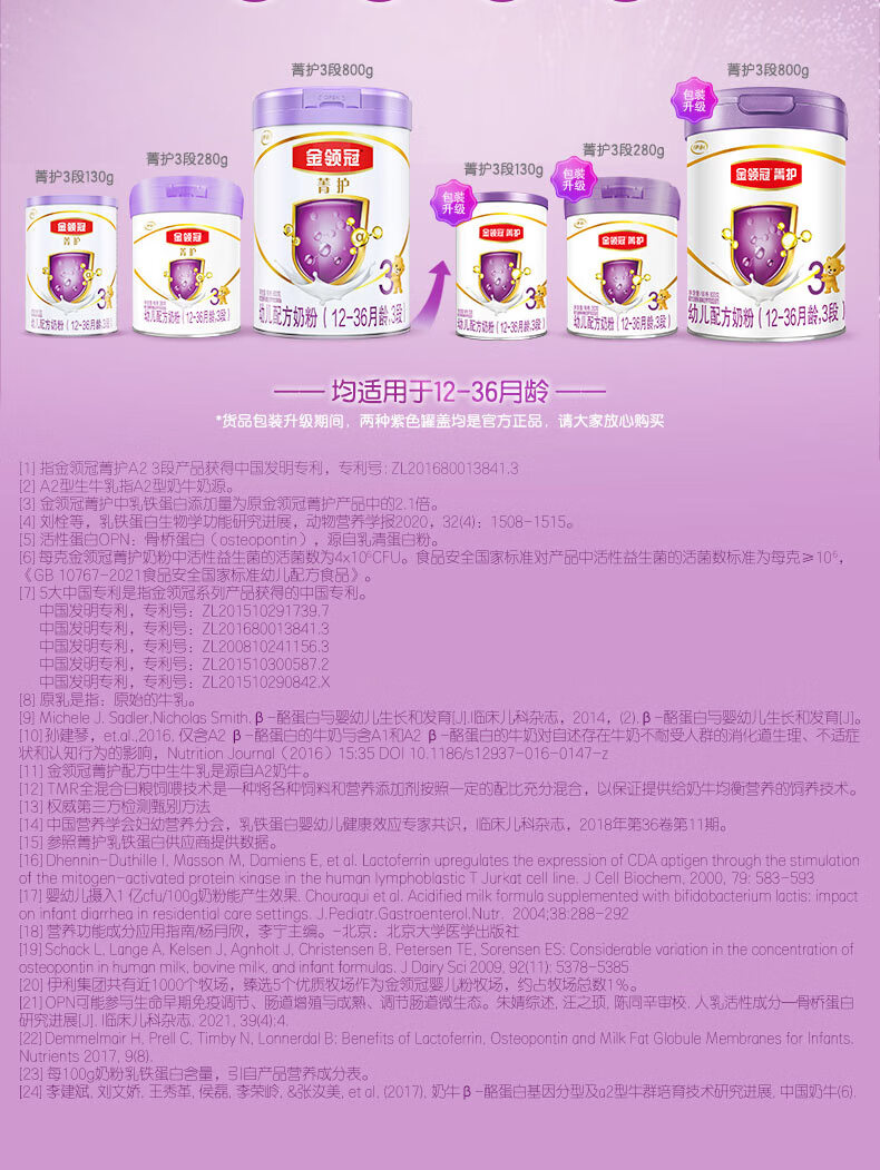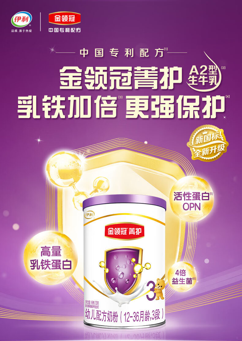 伊利奶粉金领冠菁护系列幼儿配方奶粉3段130g(1-3岁幼儿适用)