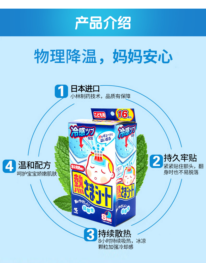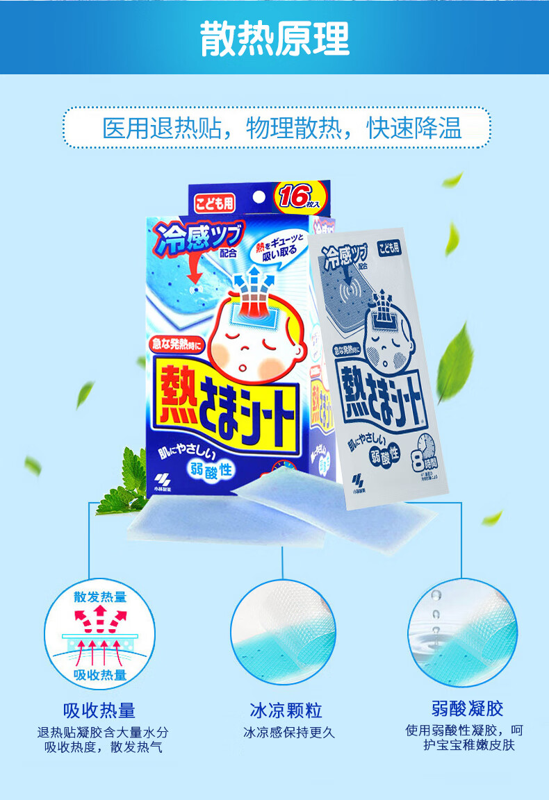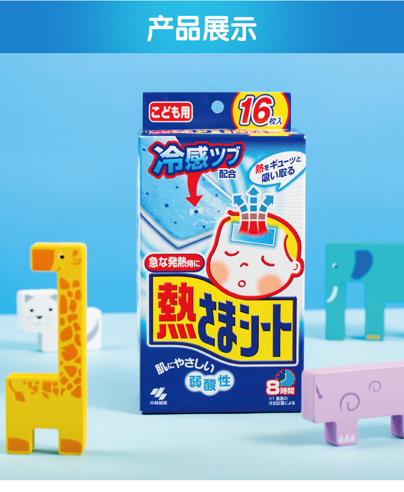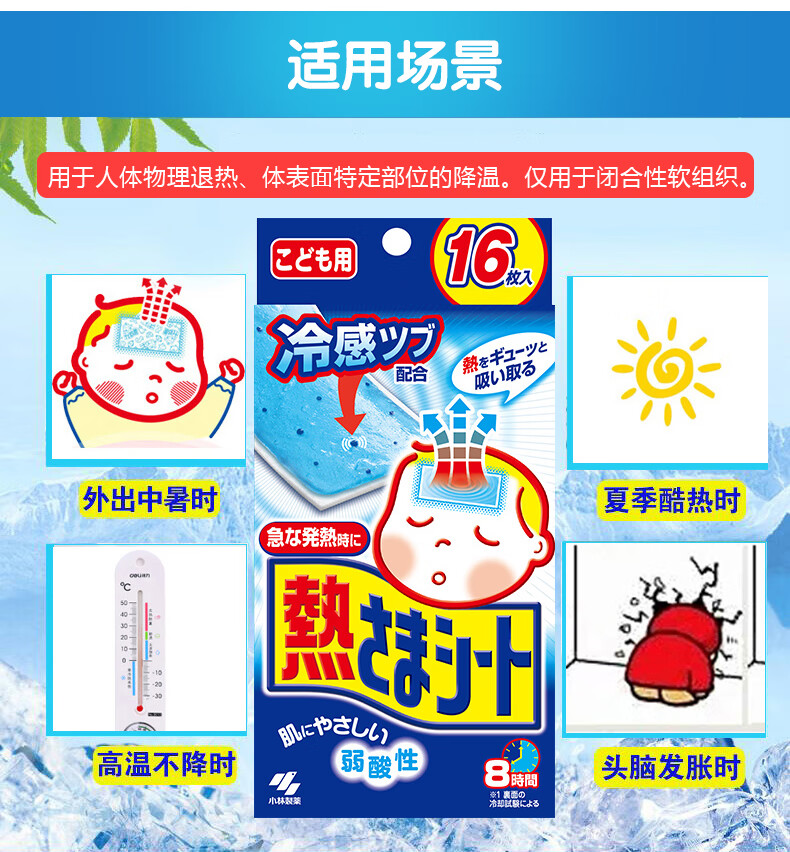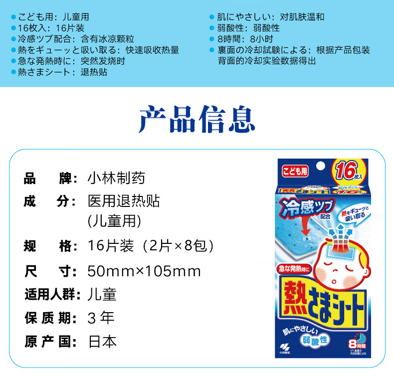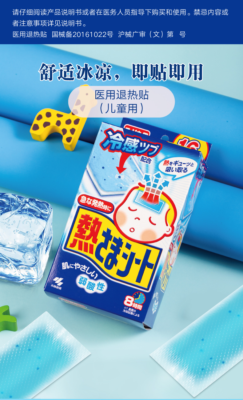 小林制药(KOBAYASHI)退热贴儿童蓝色16片日本进口宝宝退烧贴冰宝贴2岁以上用