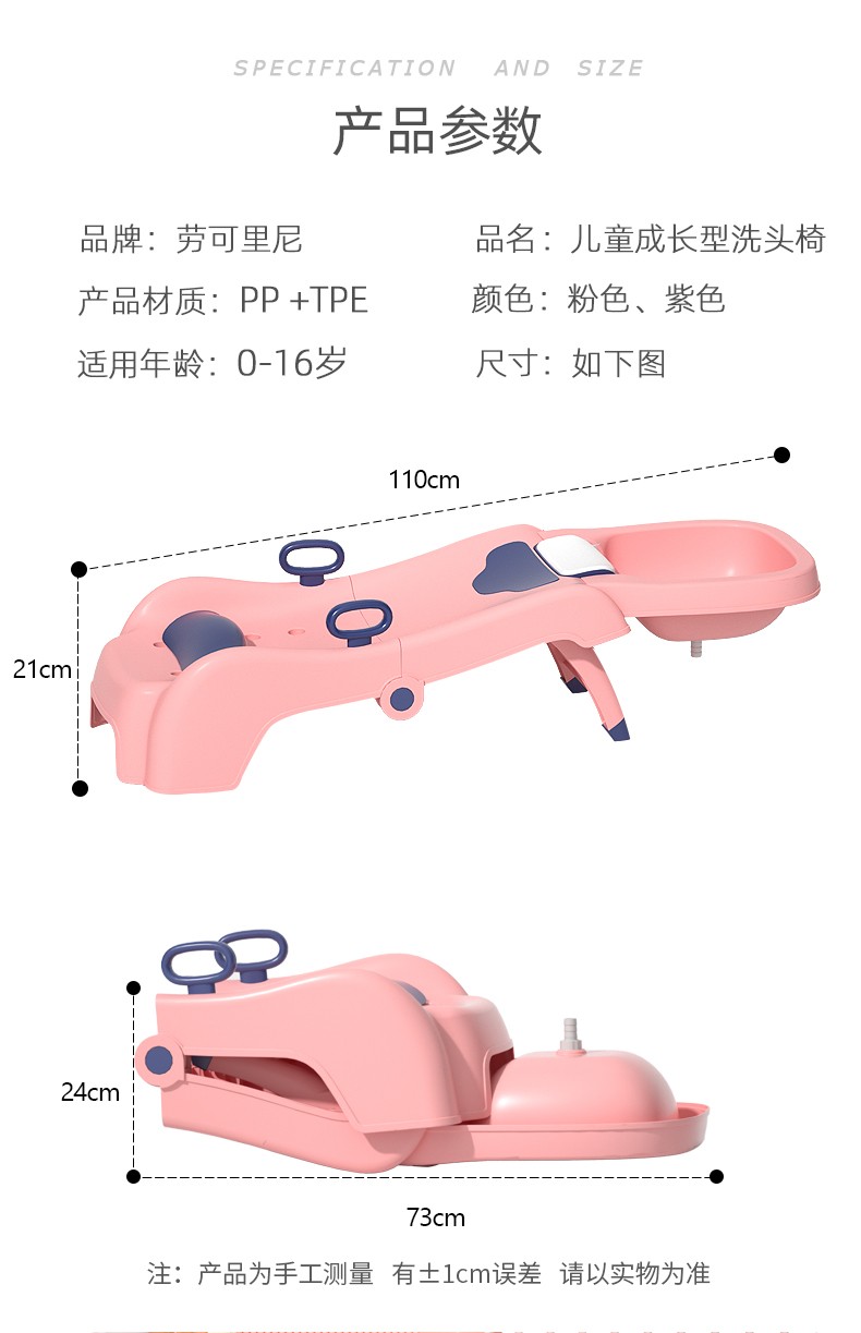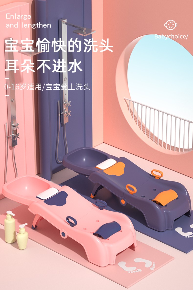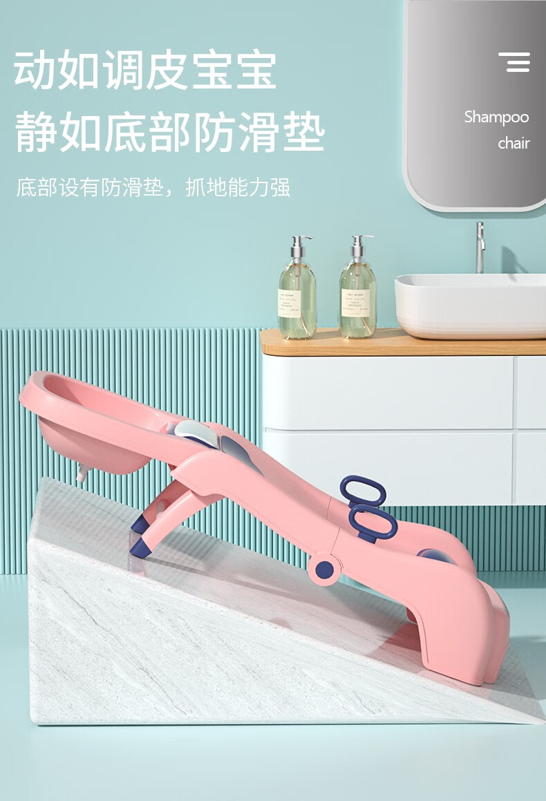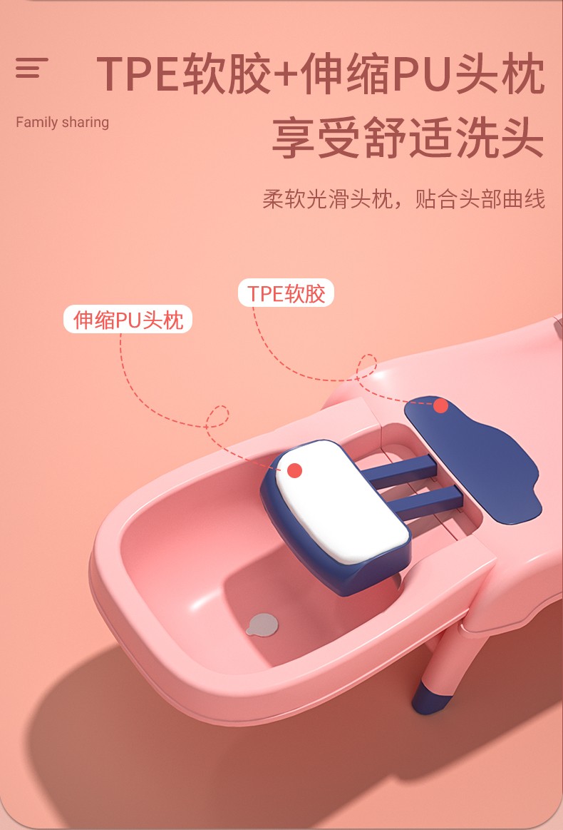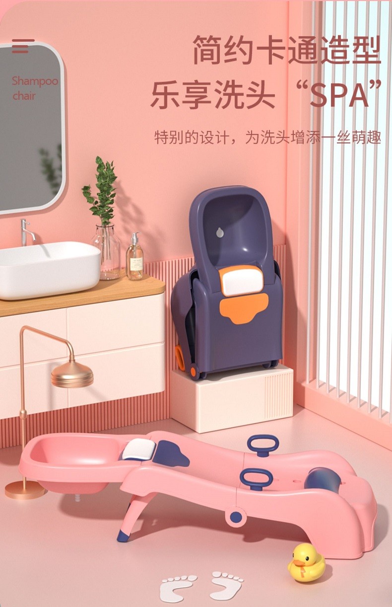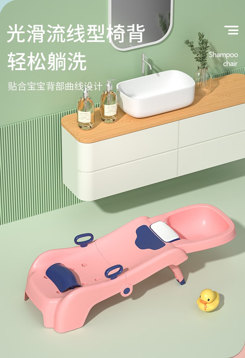 劳可里尼(NOCOLLINY)儿童洗头躺椅可折叠洗头神器宝宝家用小孩坐洗发婴儿洗头发床凳子粉色PVC软垫【0-16岁适用】